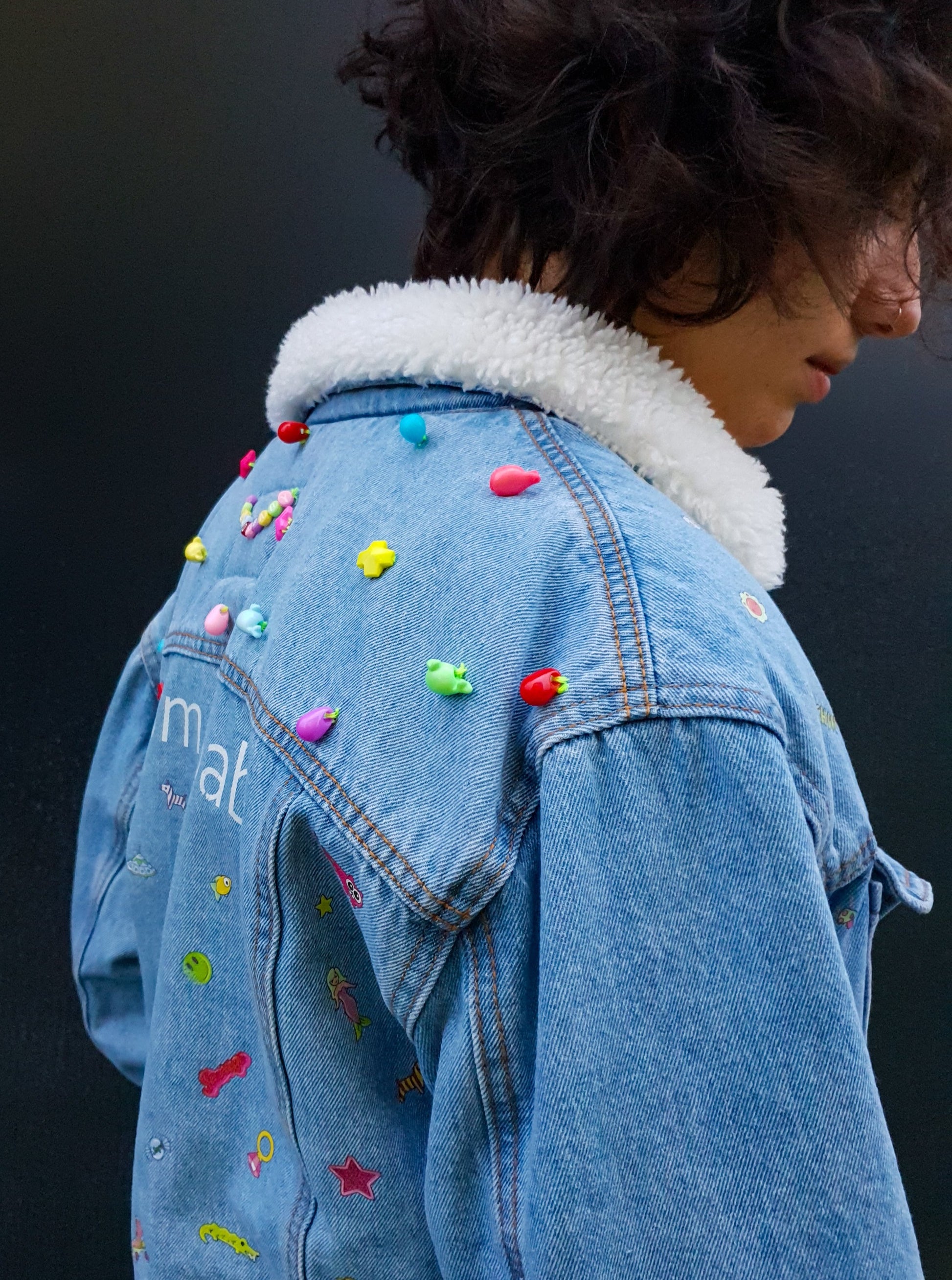 To add a tactile twist, the upper back is embellished β bead by bead β with bright, 3D charms that shimmer with motion and personality. The inside is fully lined with cozy faux-shearling, making it warm, huggable, and ready for adventures from autumn to early spring.
